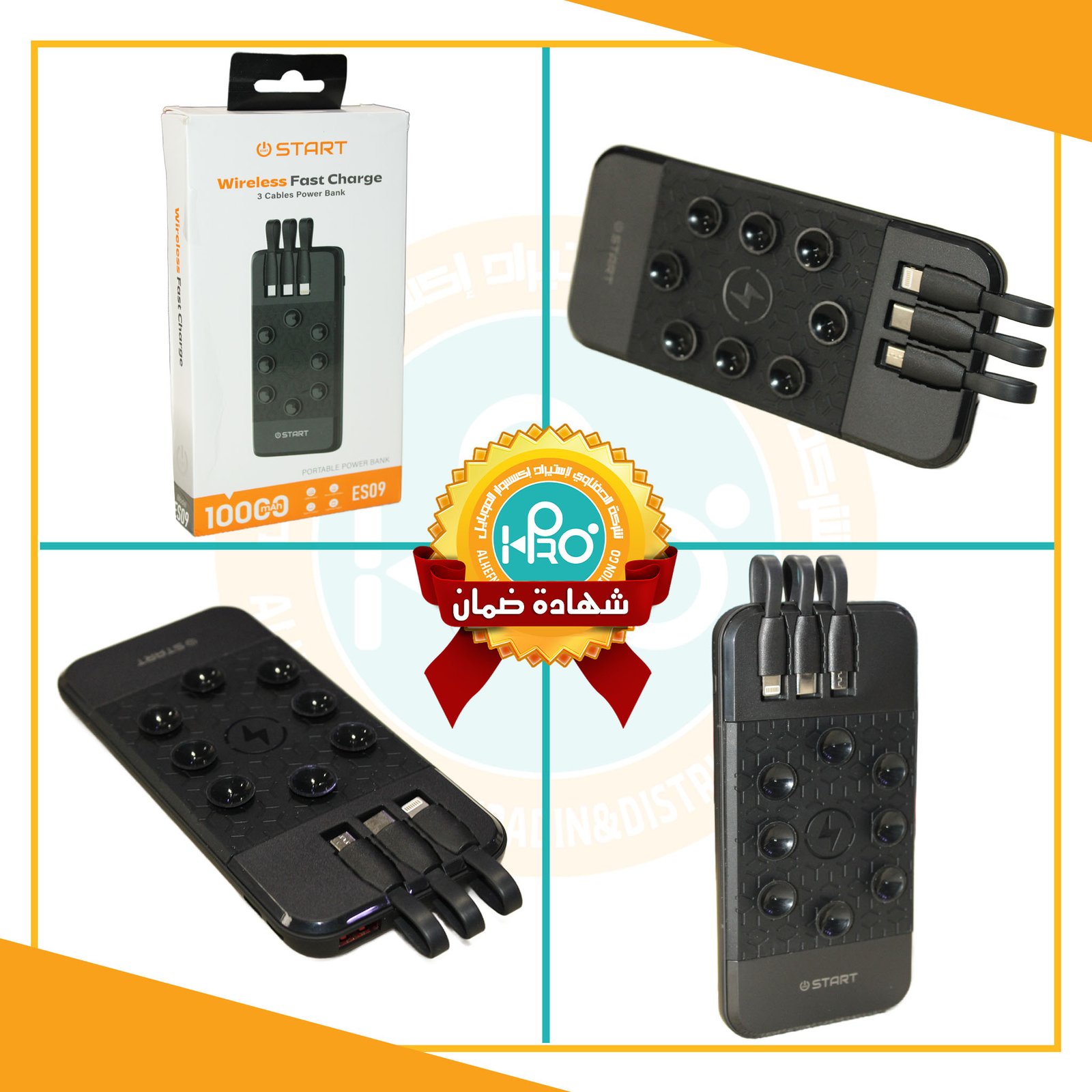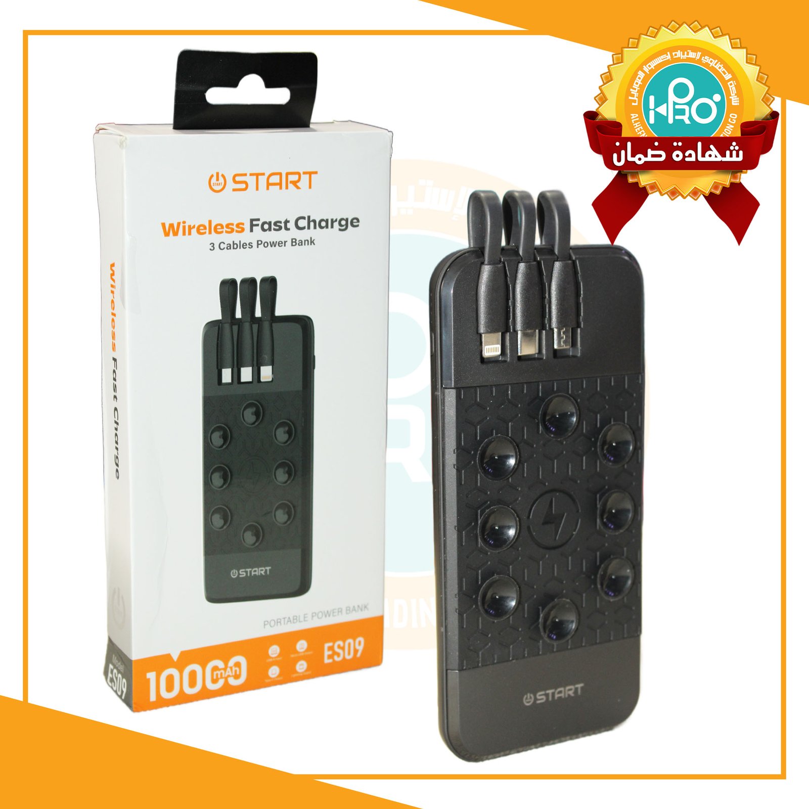 باور بنك اصلى شركة شحن وايرلس شفاط 10000 ملي امبير 3 كابل START - ES09