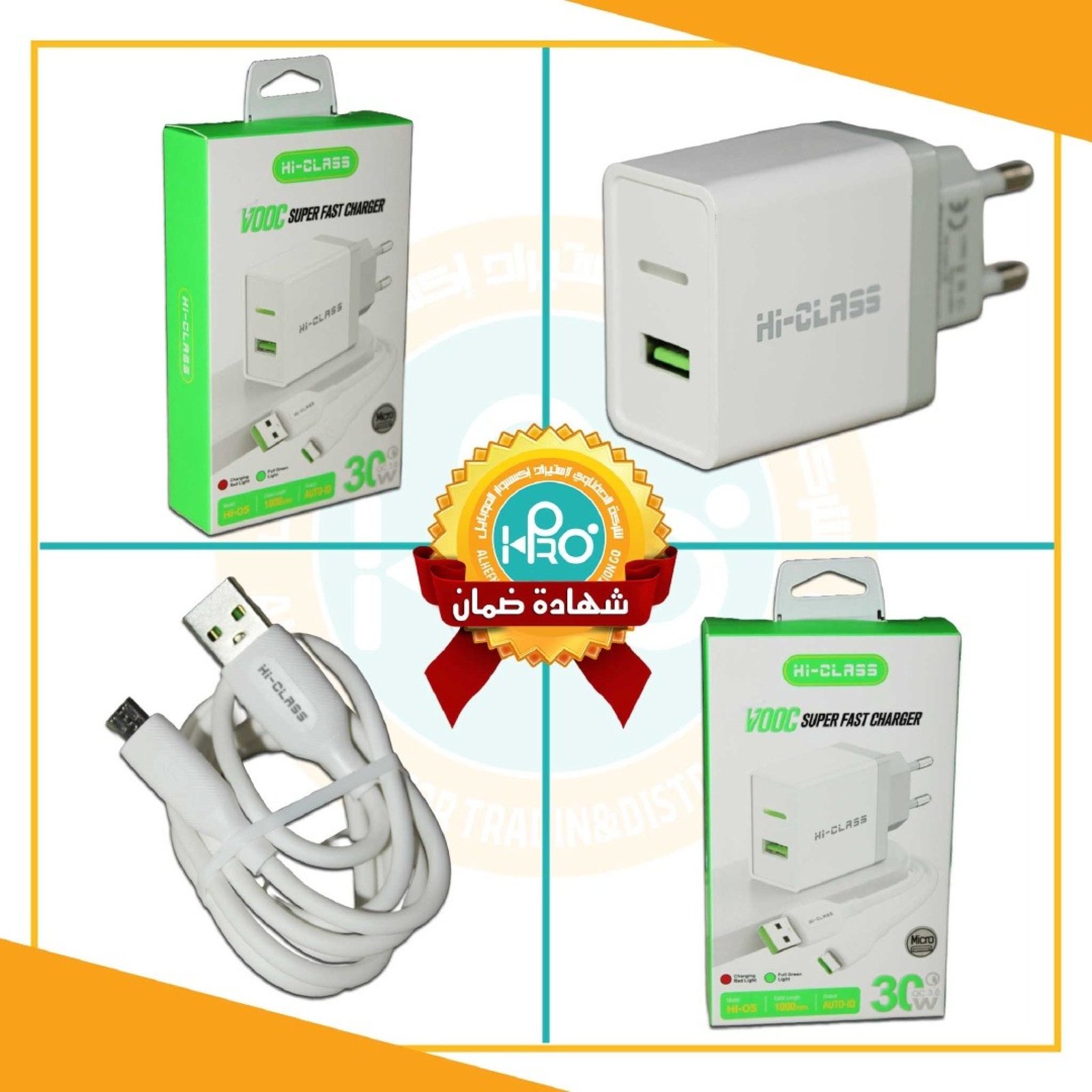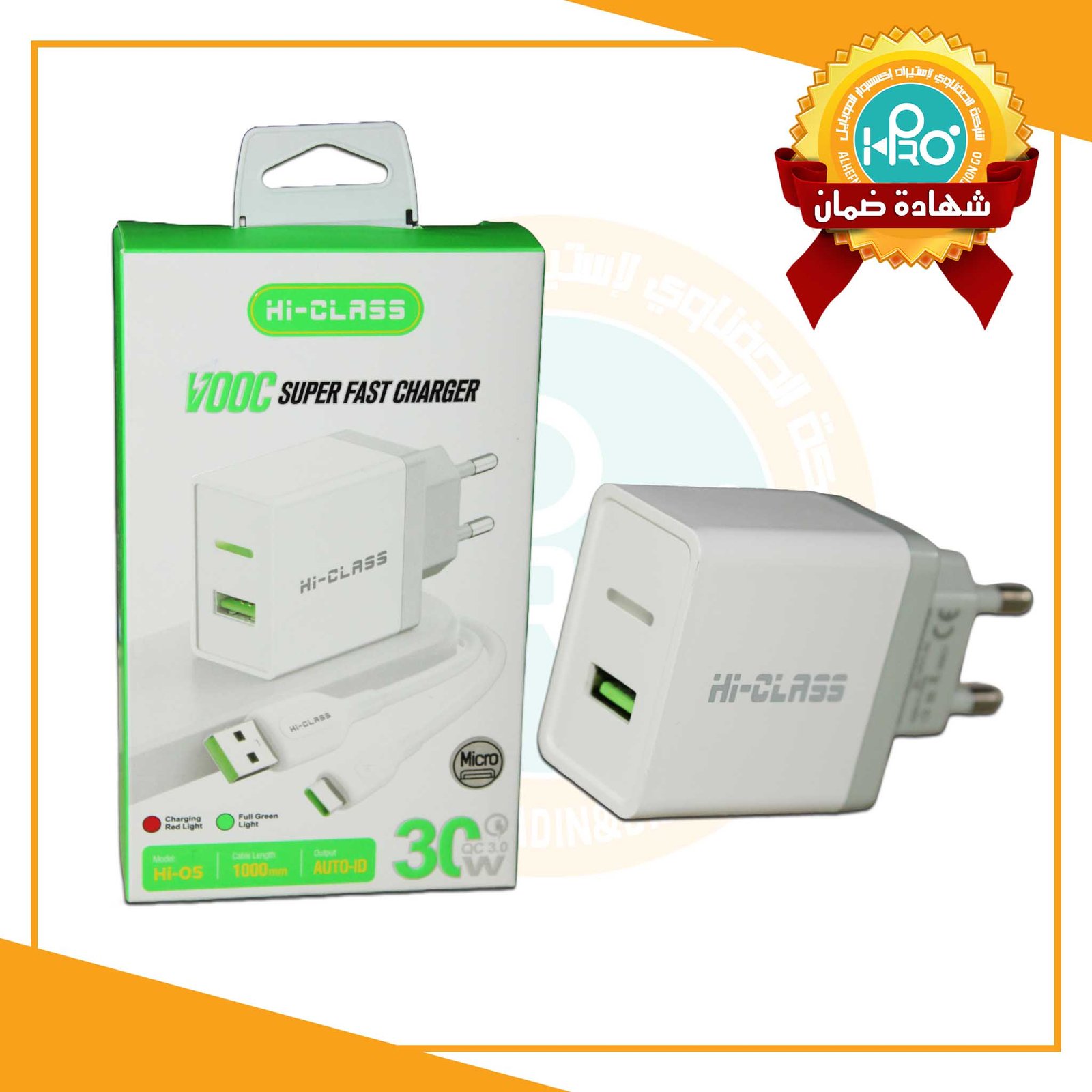 شاحن مايكرو اصلى شركة 30 وات بخاصية AUTO-ID وسوبر فوك HI-CLASS HI-05