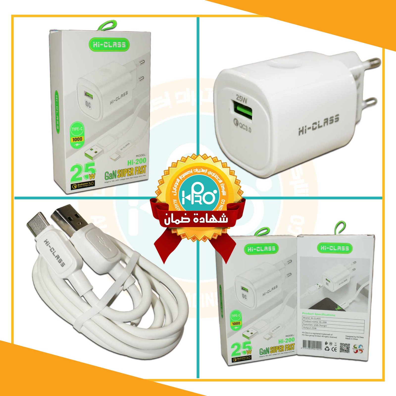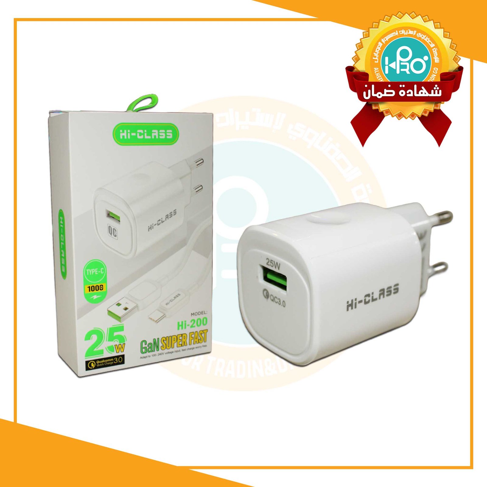 شاحن تايب سى اصلى شركة 25 وات بخاصية كوالكوم وسوبر فاست HI-CLASS HI-200