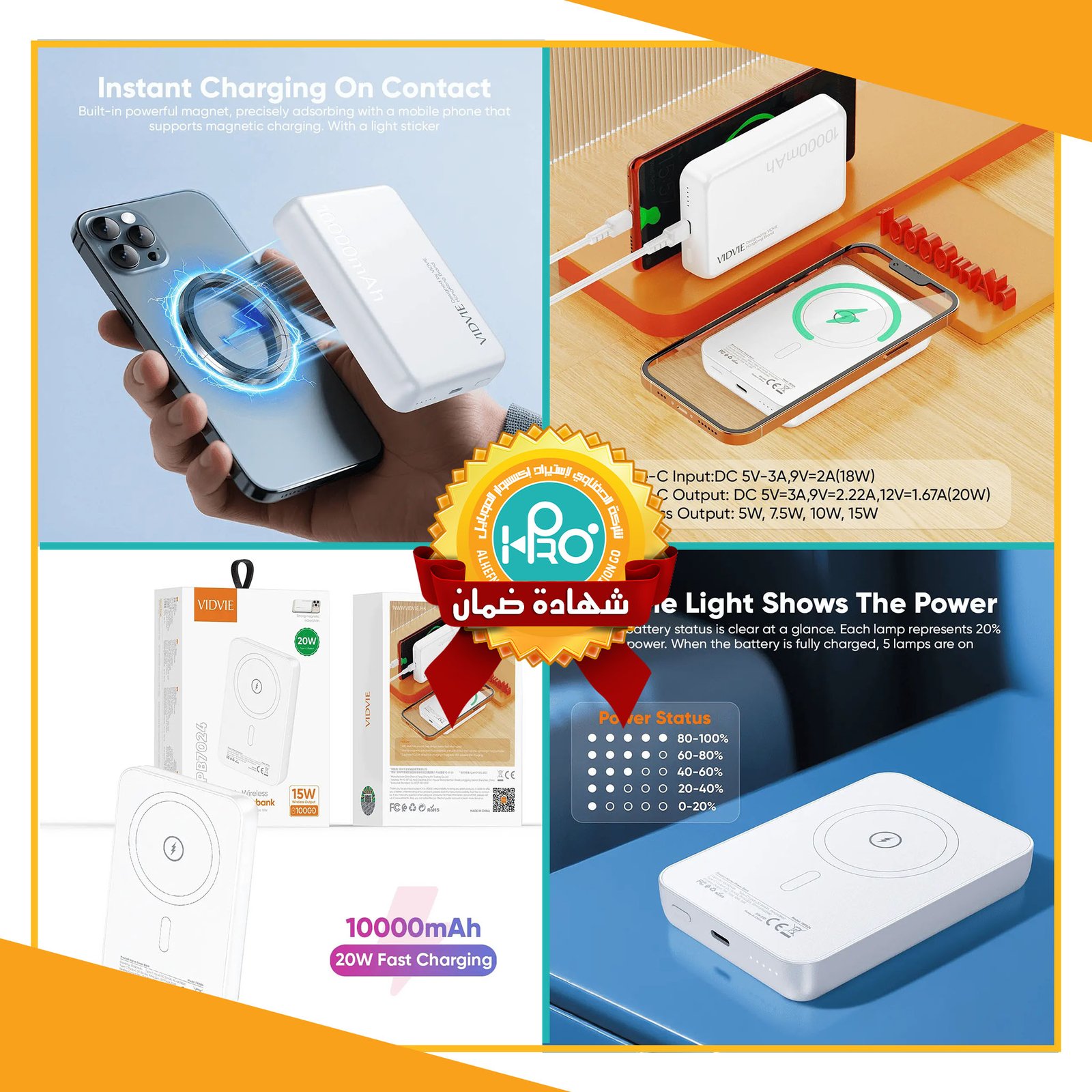 باور بنك اصلى شركة ماج سيف 10000 ملى امبير VIDVIE PB7024