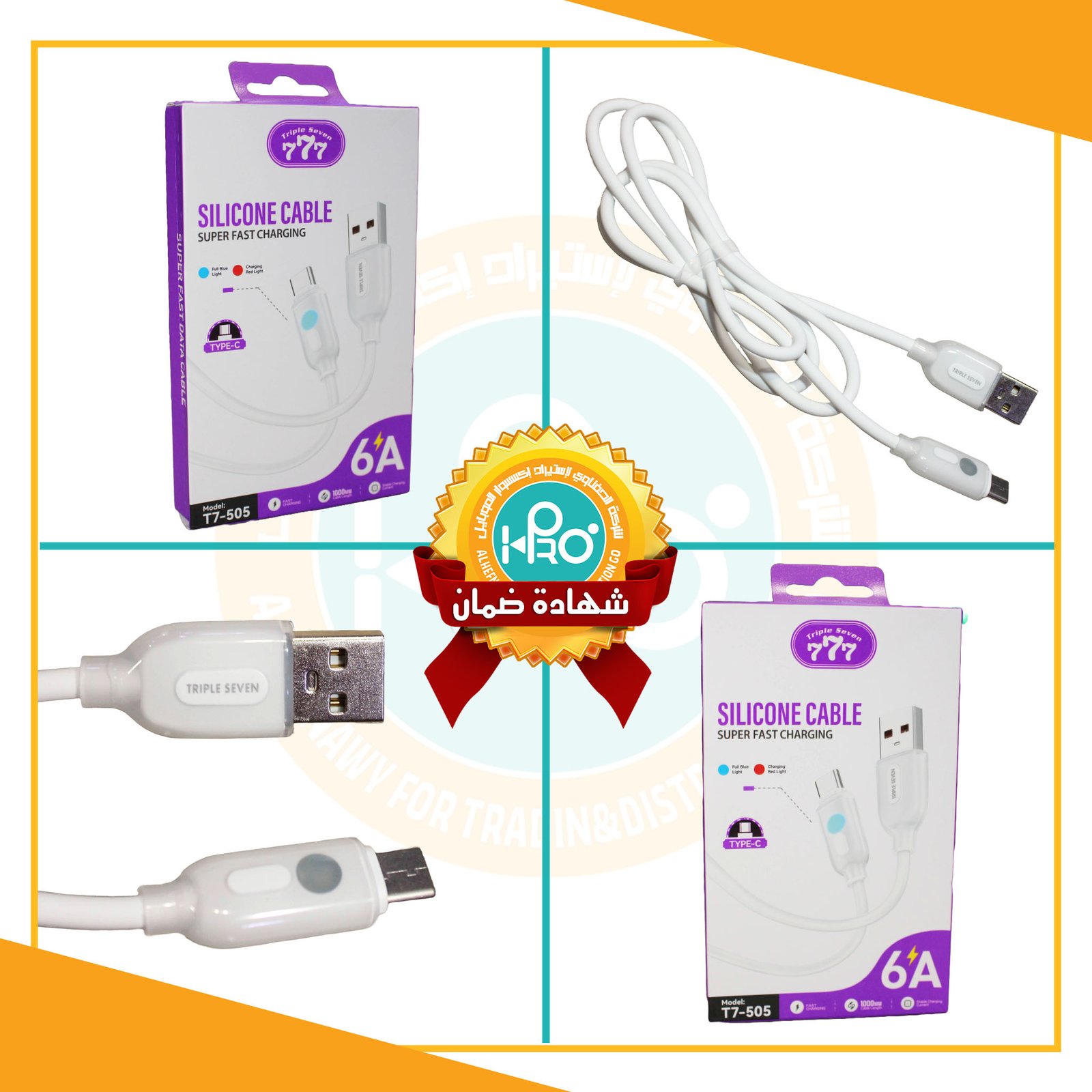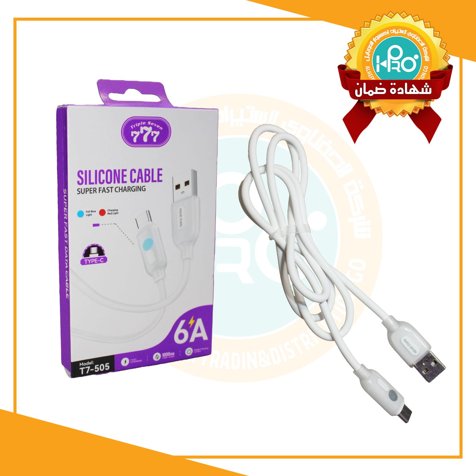 كابل تايب سى اصلى شركة 6 امبير بيان مع الشحن TRIPLE SEVEN 777 T7-505