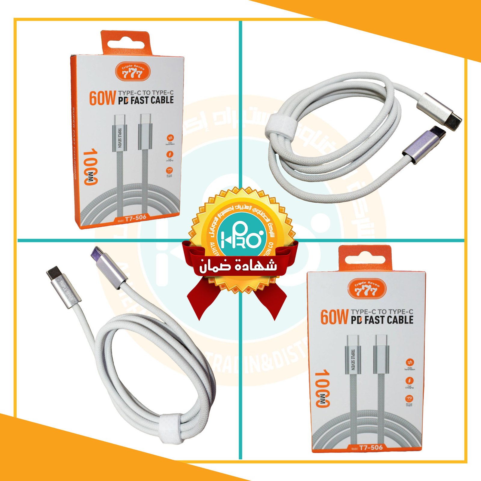كابل تايب سى * تايب سى اصلى شركة 60 وات TRIPLE SEVEN 777 T7-506
