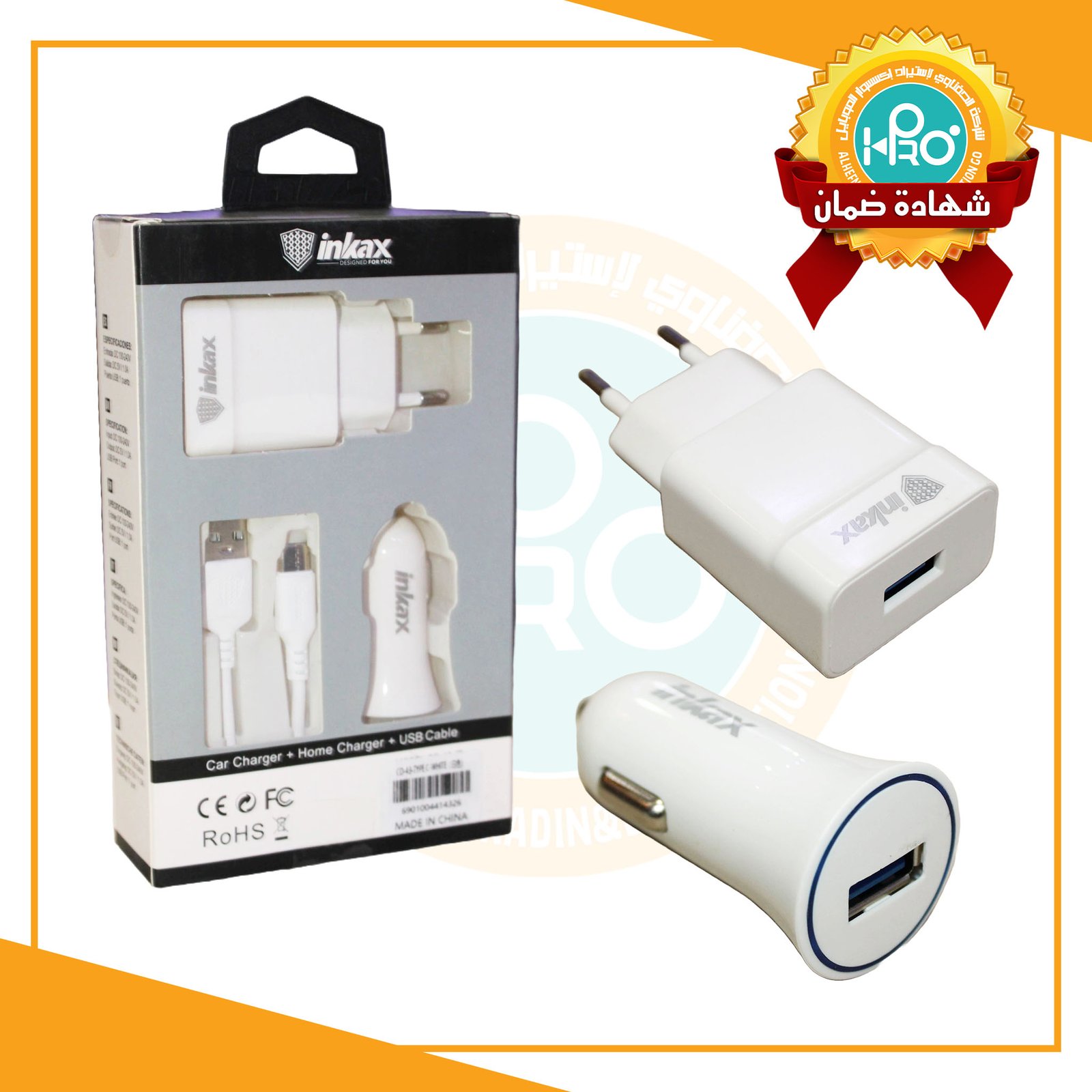 شاحن منزل + شاحن سيارة اصلى شركة تايب سى INKAX CD-43 TYPE-C