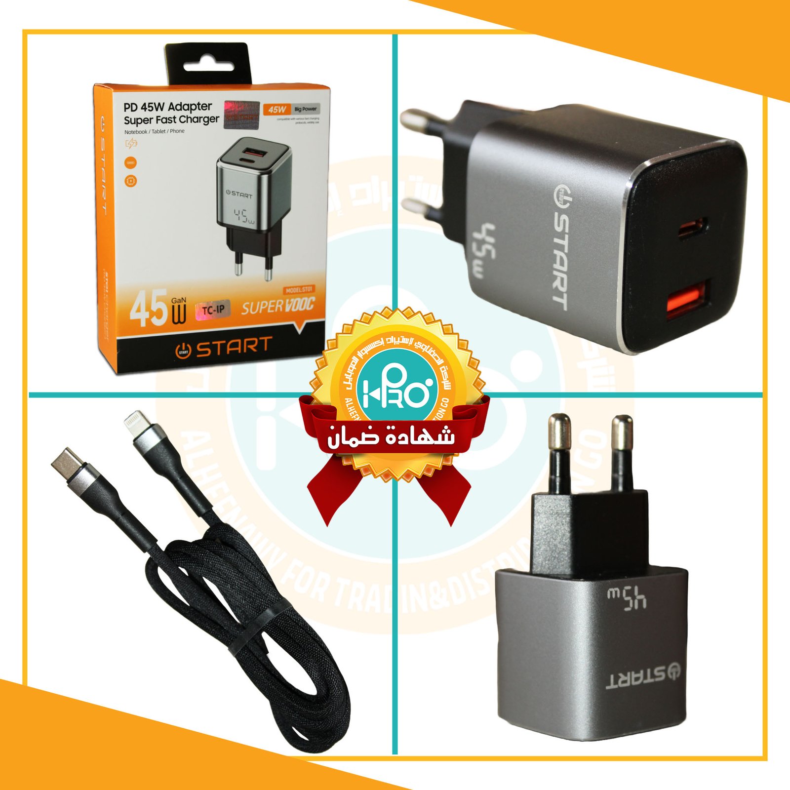 شاحن تايب سى * ايفون 45 وات اصلى شركة معدن سوبر فوك START ST01