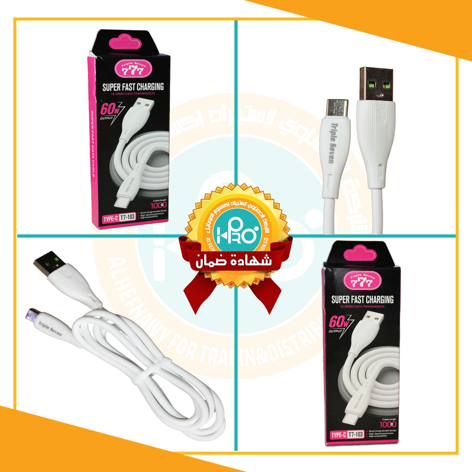 كابل تايب سى اصلى شركة 60 وات TRIPLE SEVEN 777 T7-103