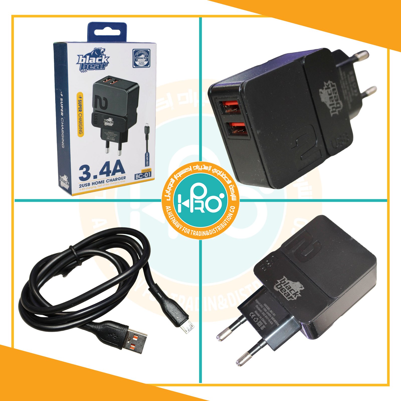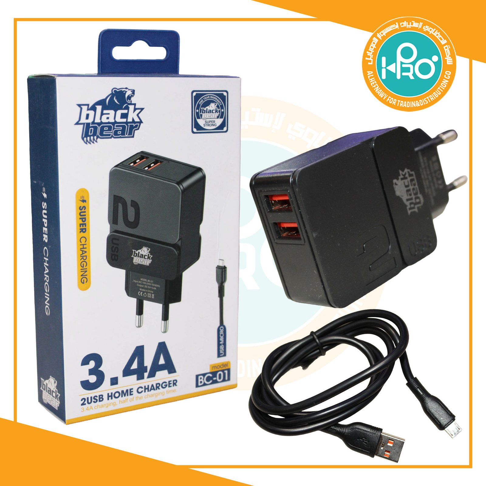 شاحن مايكرو اصلى شركة 3.4 امبير BLACK BEAR BC-01