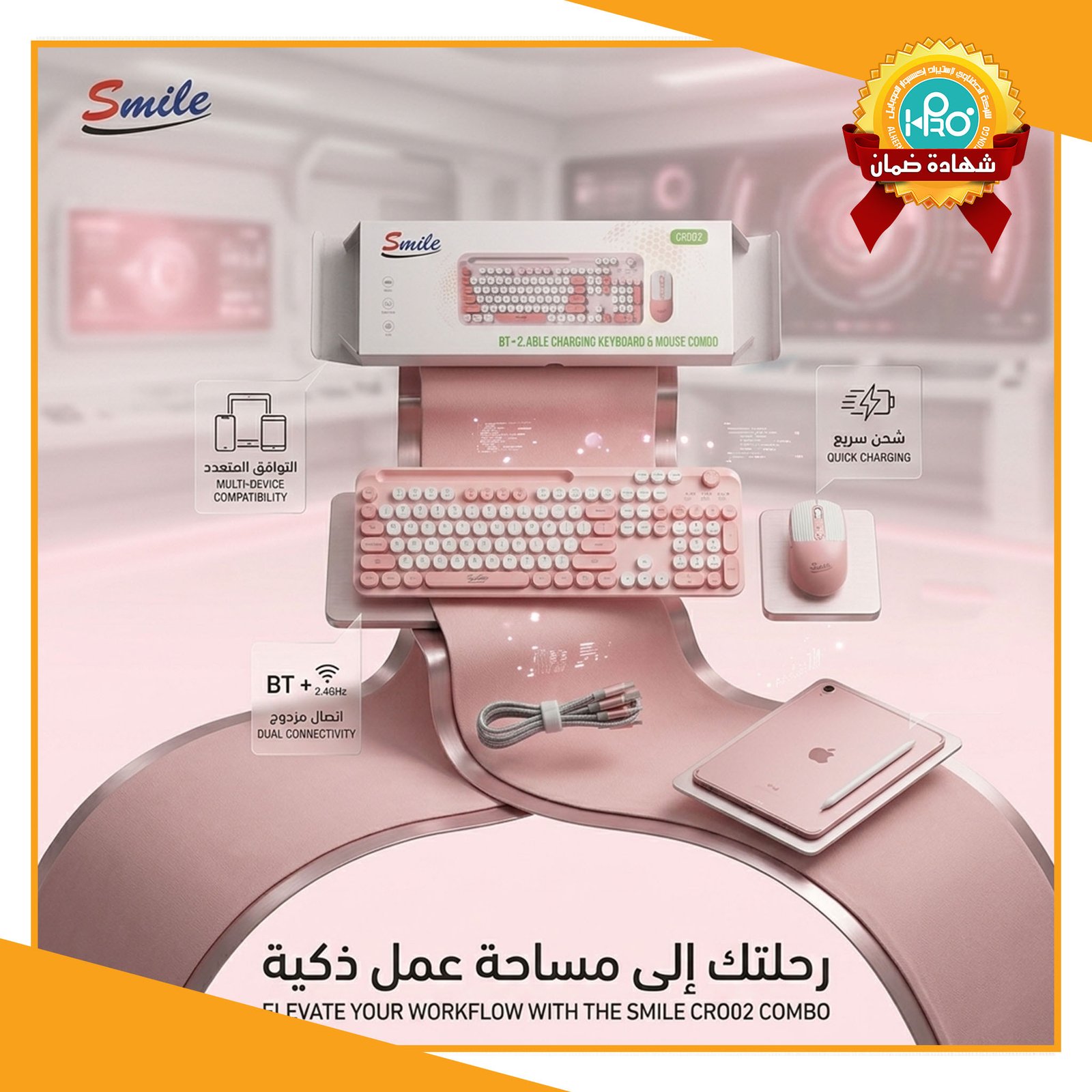 كيبورد وايرلس + ماوس وايرلس ميكانيك اتصال بلوتوث + قطعه USB اصلى شركة SMILE CR002