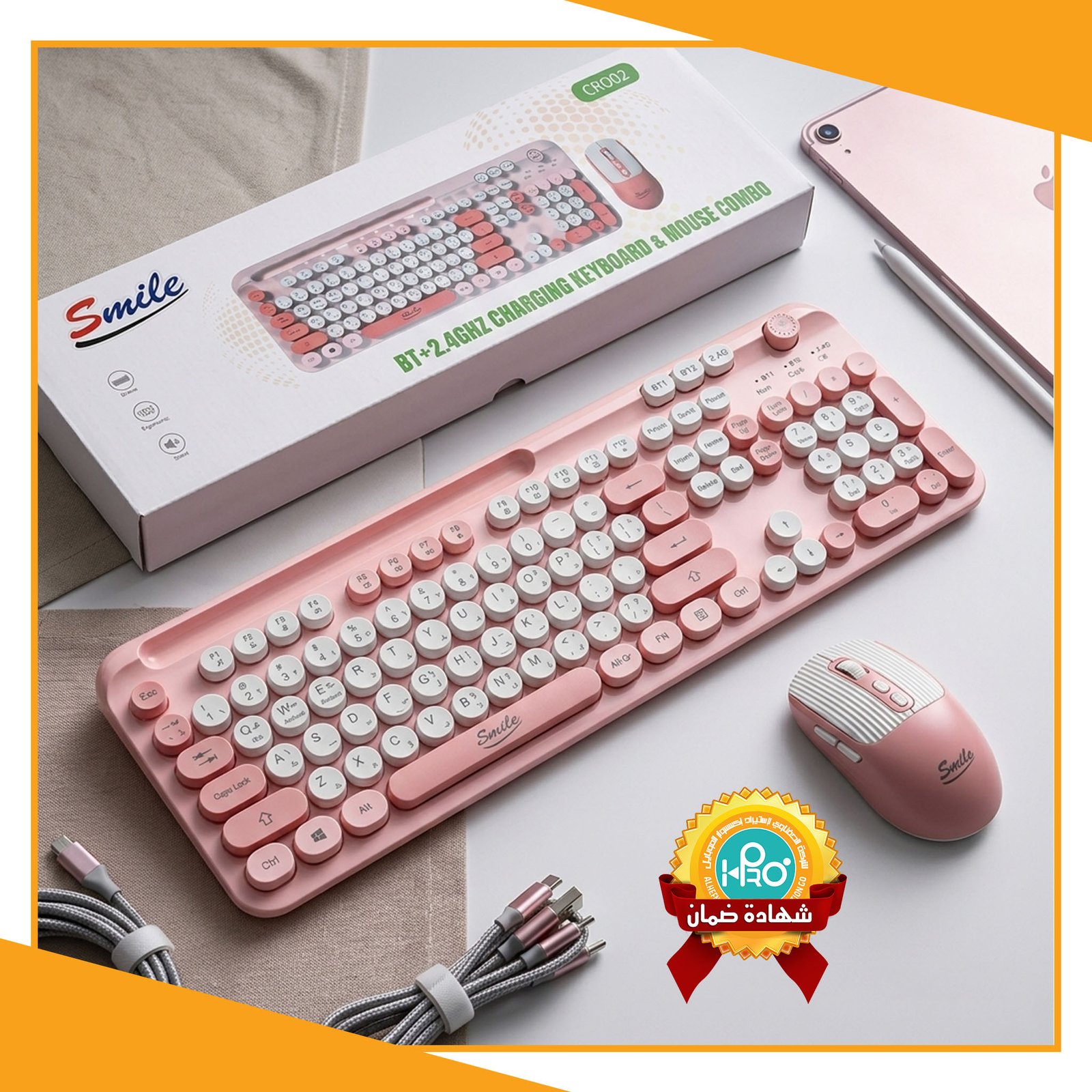 كيبورد وايرلس + ماوس وايرلس ميكانيك  اتصال بلوتوث + قطعه USB اصلى شركة SMILE CR002